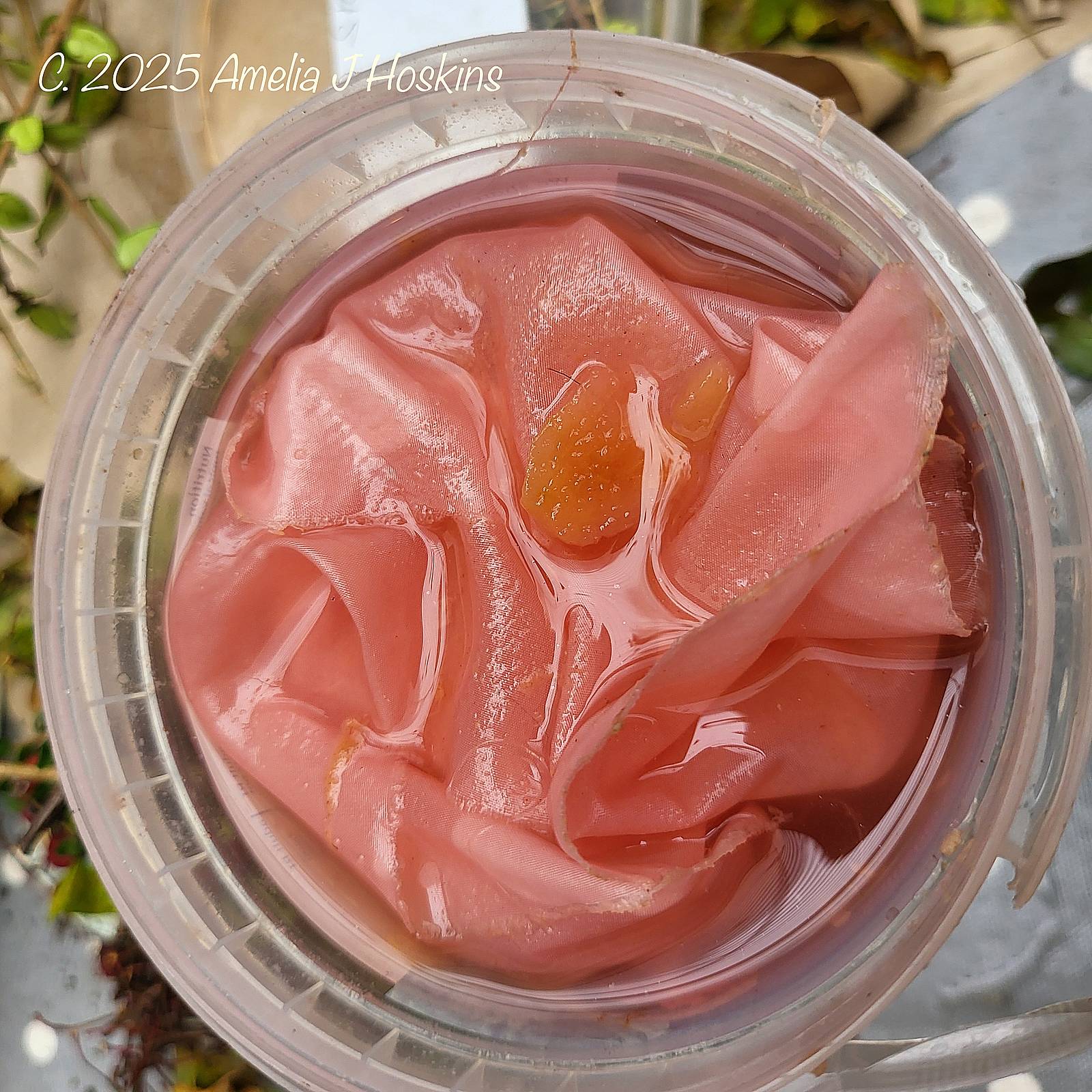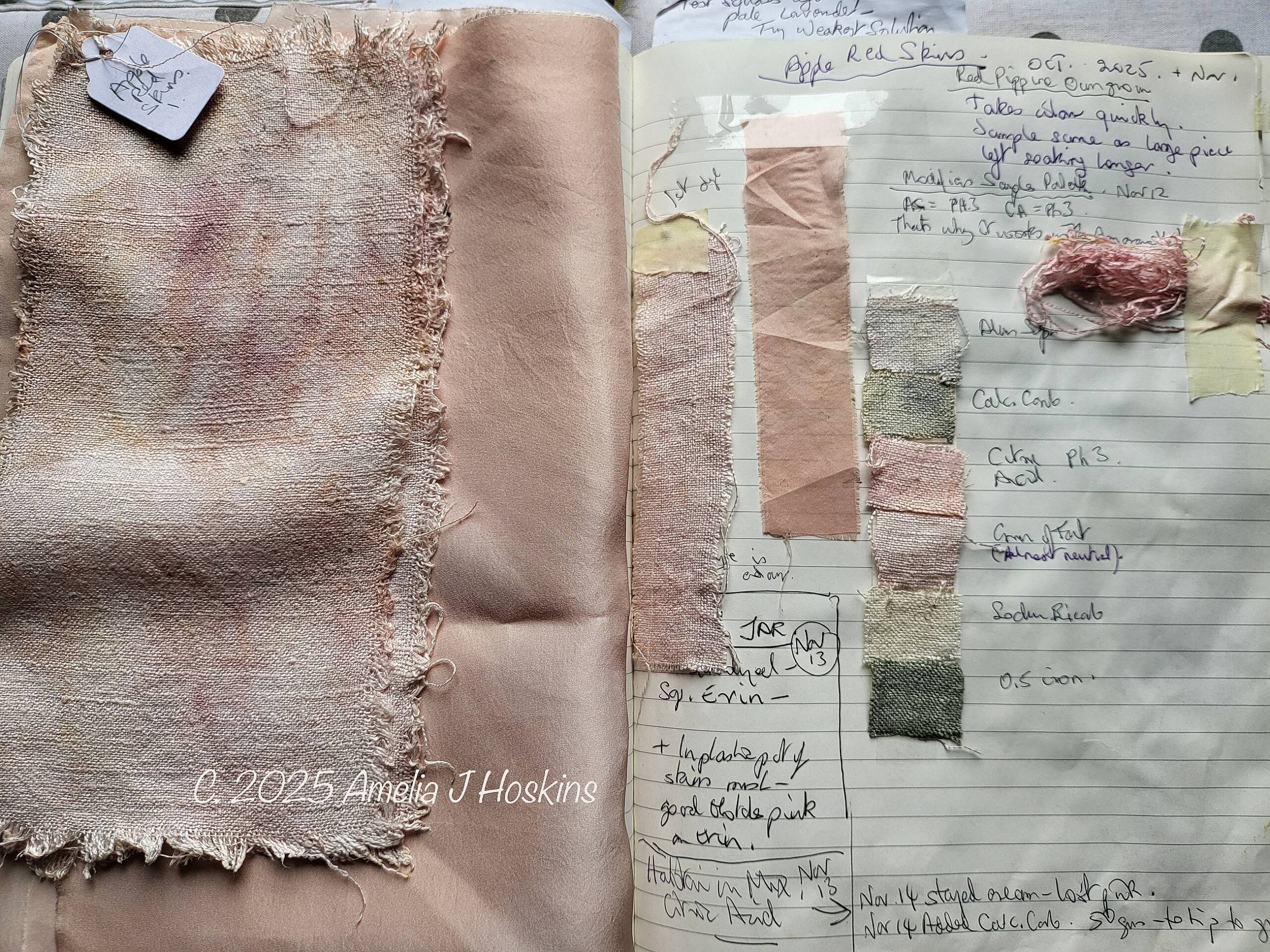I only found out this year that the red skins when soaked produce a pale pink.  The apple cider vinegar produced is also very helpful in gaining a pink with Amaranth dye  as it gives a Ph3.  A few Amaranth flowers are visible behind the apples.