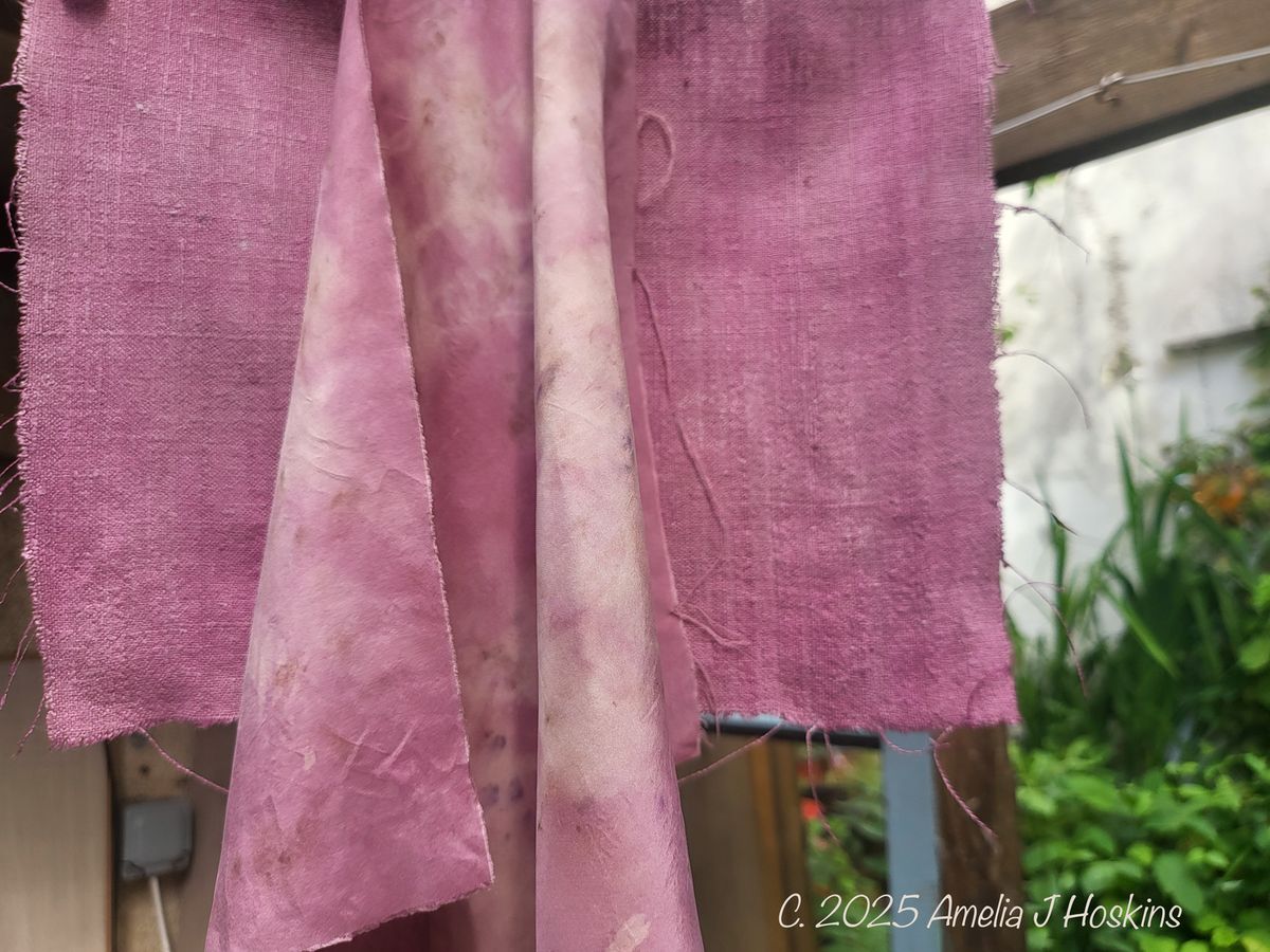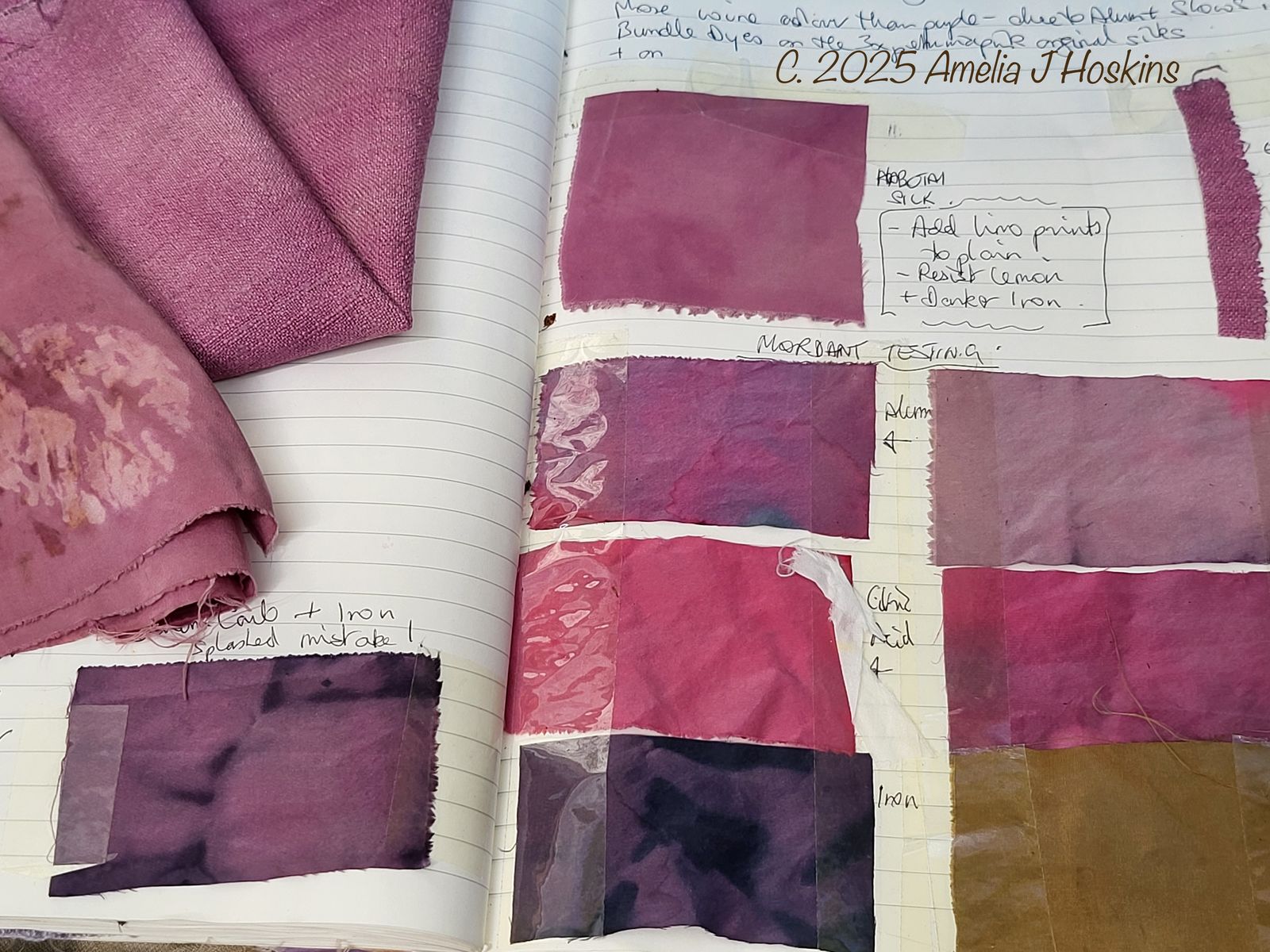 Blackberry dye is stored to be re-tested with iron for lavender to violet and citric acid for brighter pink. TO CONTINUE...
