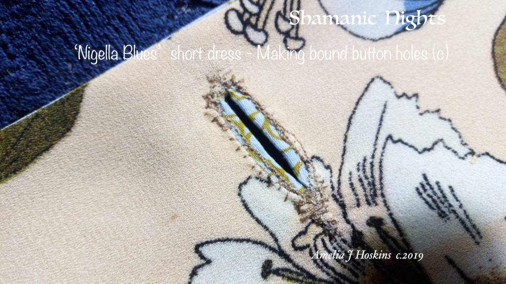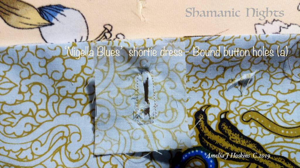 Nigella Blues Smock – Bound buttonhole sewing – Click to enlarge