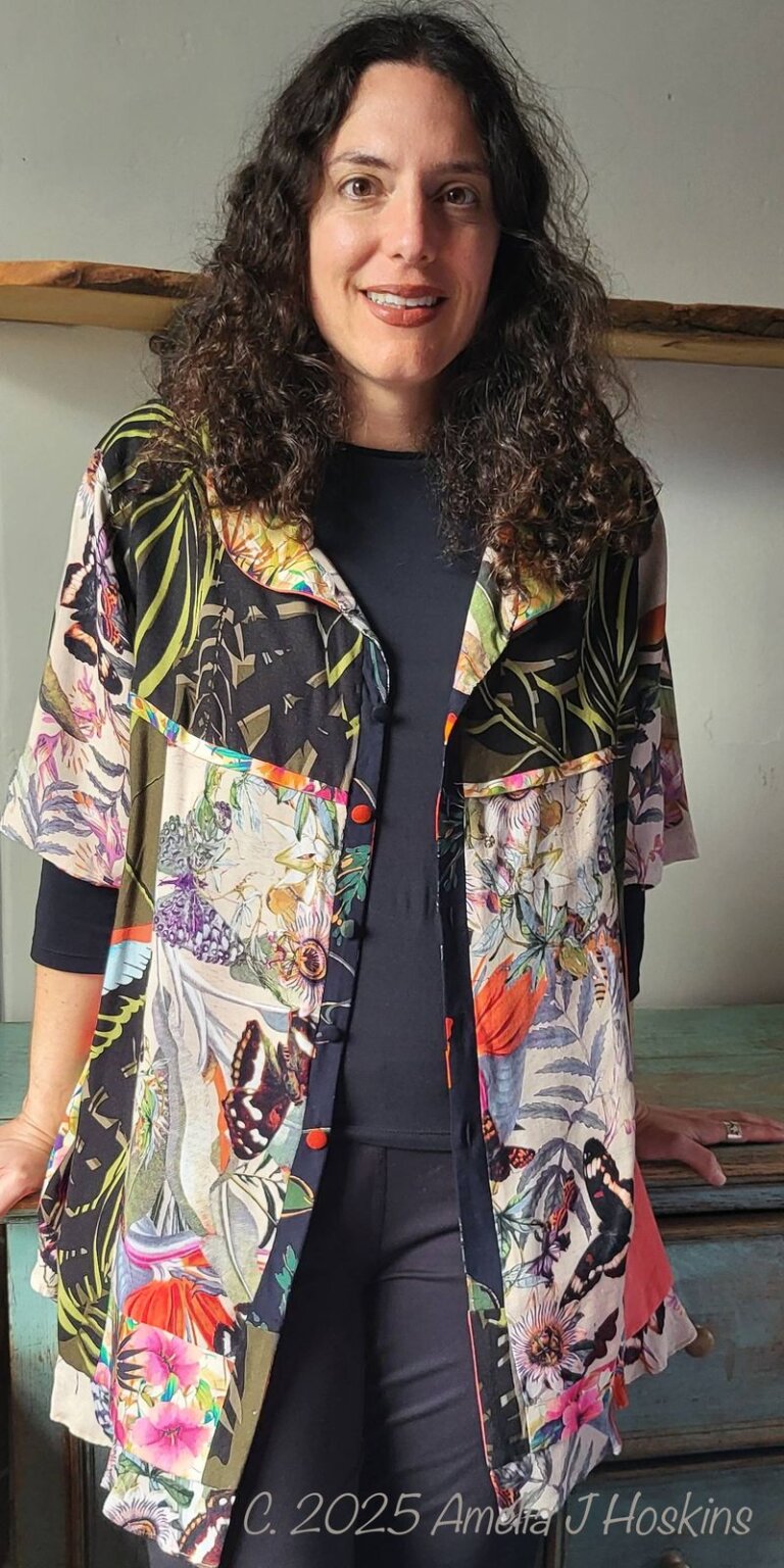 BLUEBIRD - Modelled by Giorgia, Theatre director, visiting guest.  Relaxing with simple one front button.