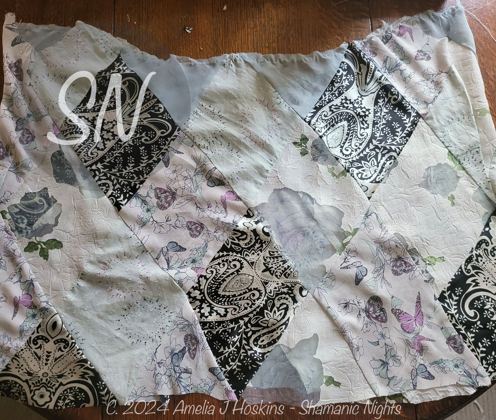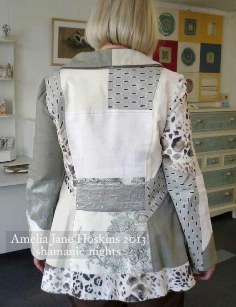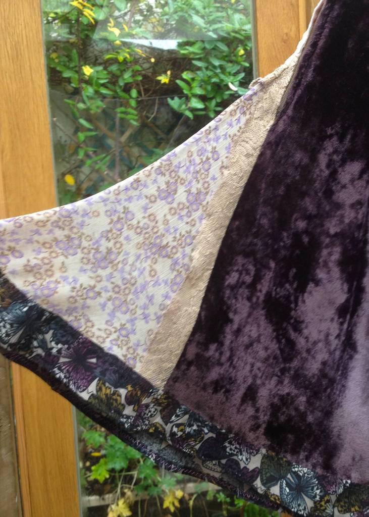 Patchwork is cut on bias, like back, so will flare.  Unlined for coolness.