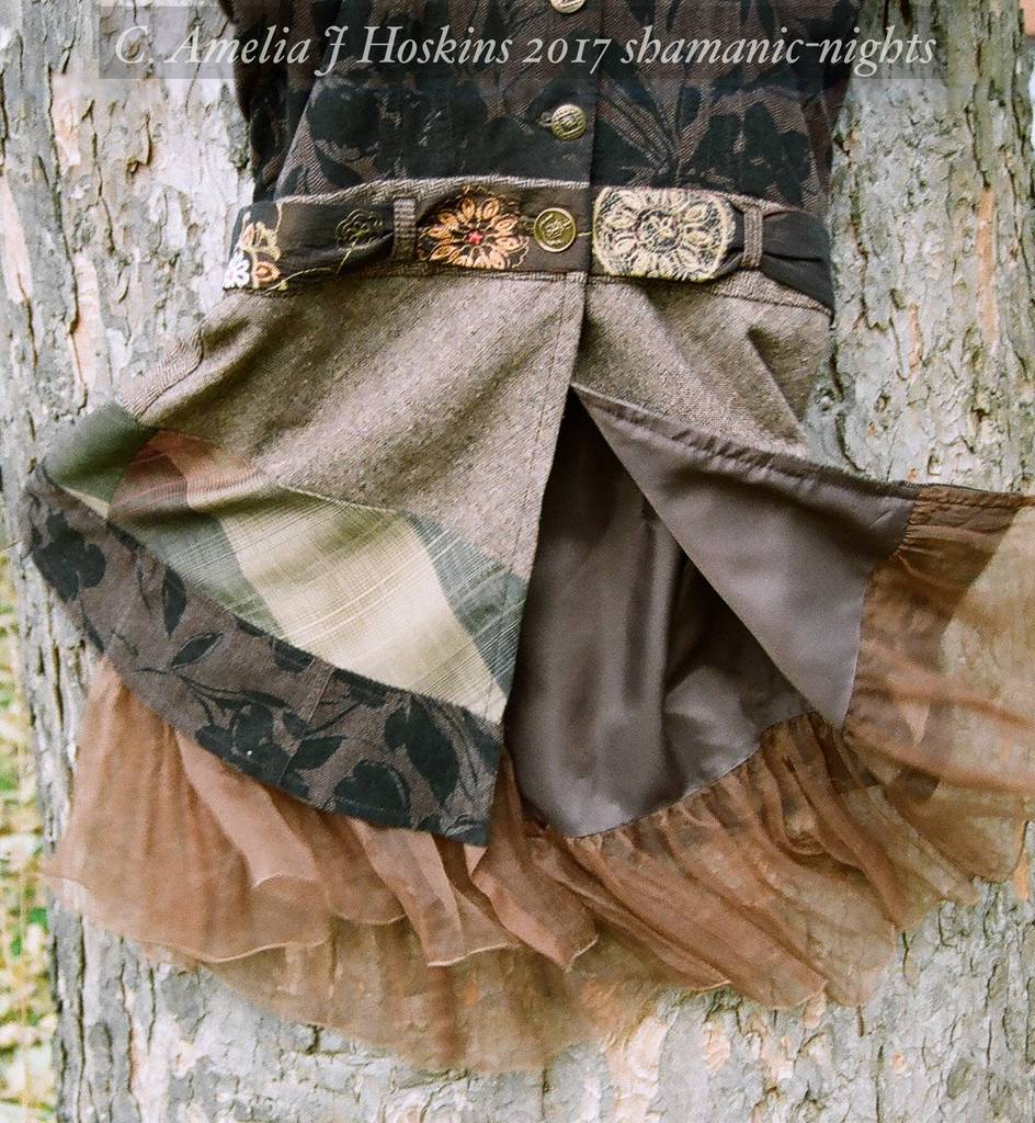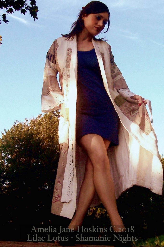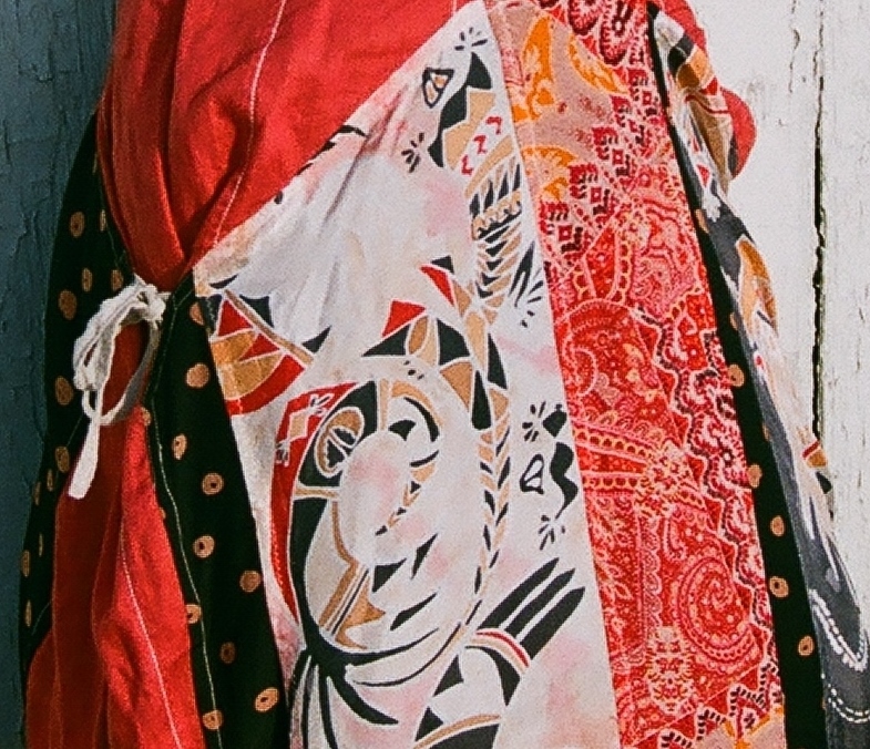 Garments are unique one-offs, not available in a range of sizes.  Some are size adjustable at bust.  Patchwork dresses in mostly linen, cotton, viscose, silk, lace. Knee length and longer.  Fabric prints mixture: floral, illustrative, patterned, abstract, animal, geometric.  Some with silk painted panels by maker.  Commissions taken your fabrics or mine.