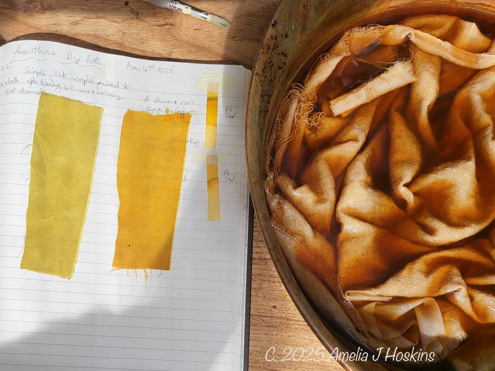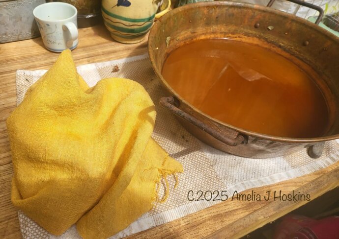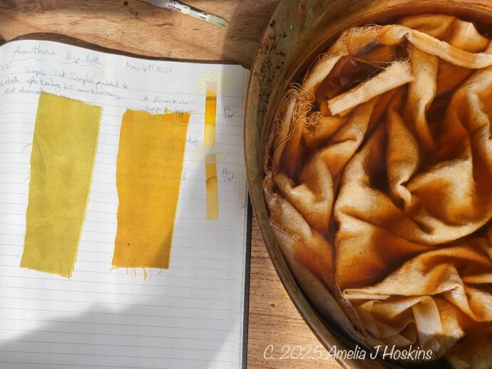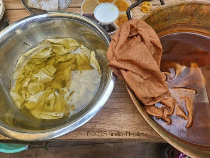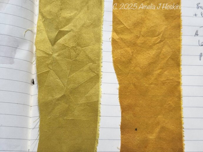 • With no mordant on silk, colour is golden yellow after 24hrs, or 48hrs.