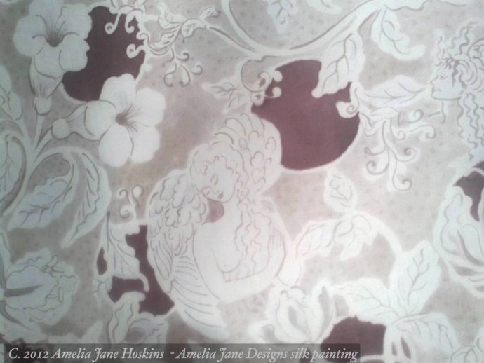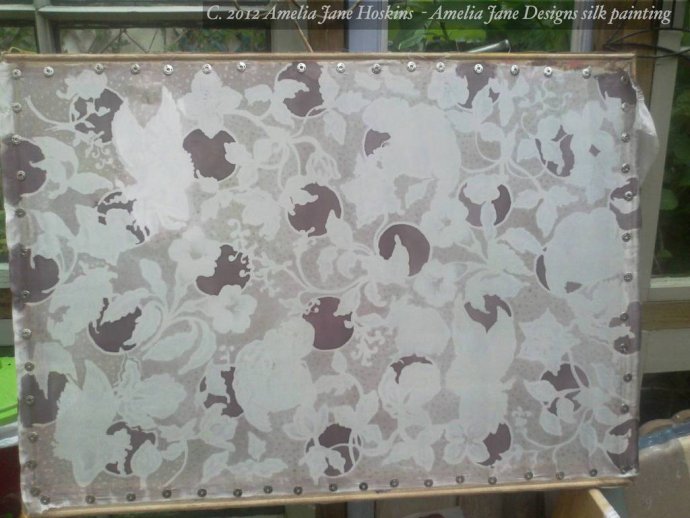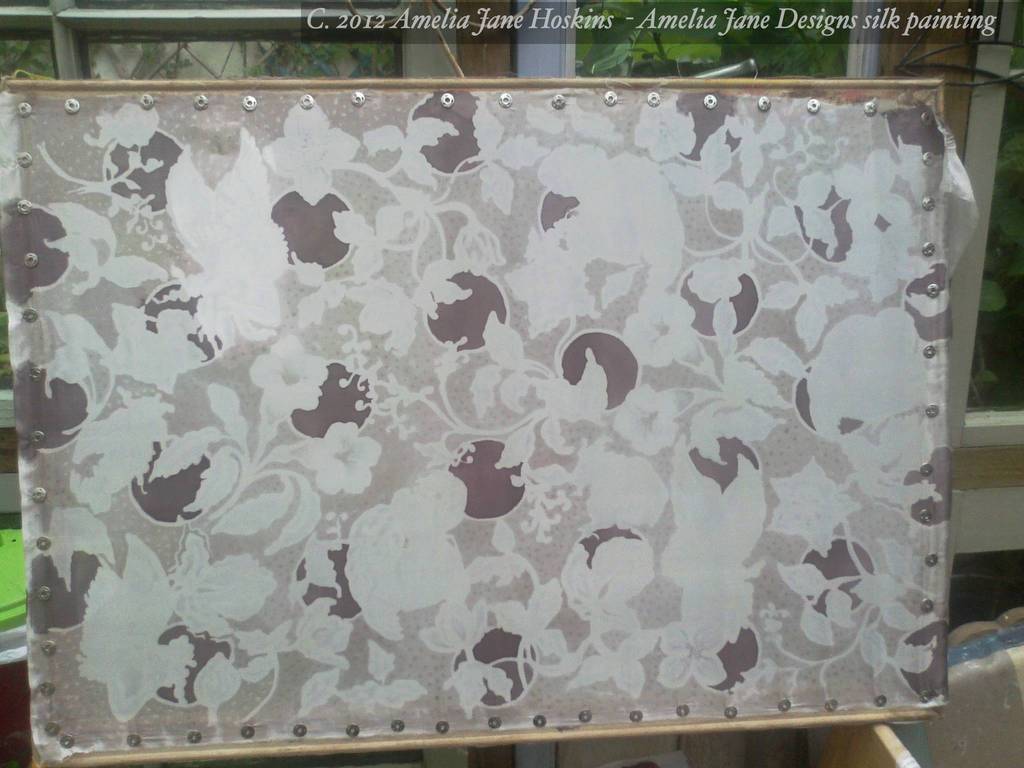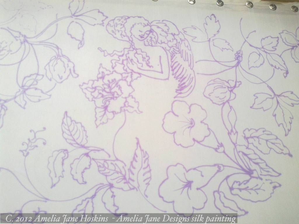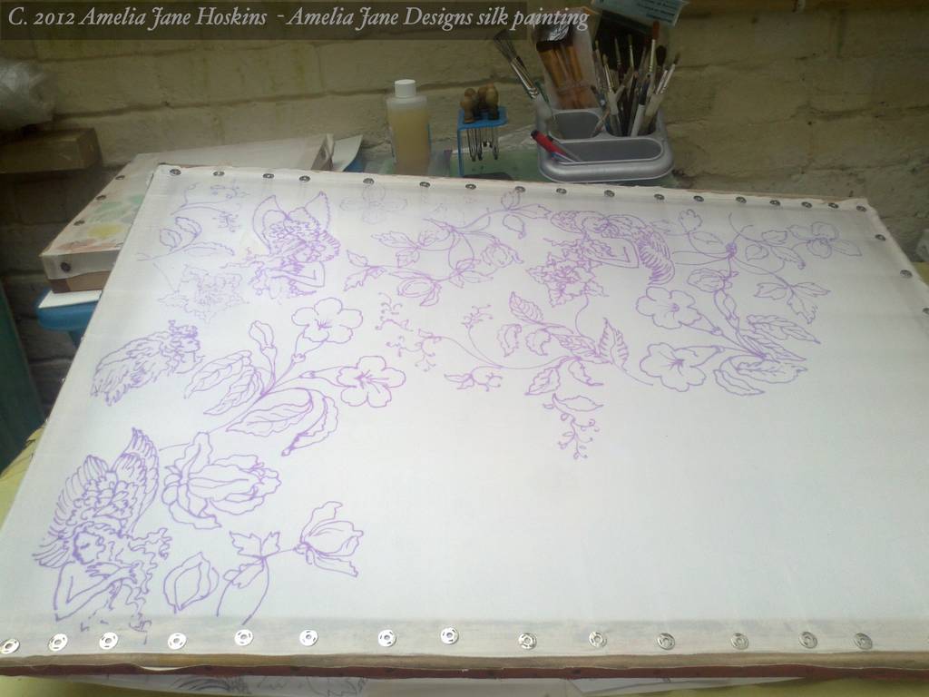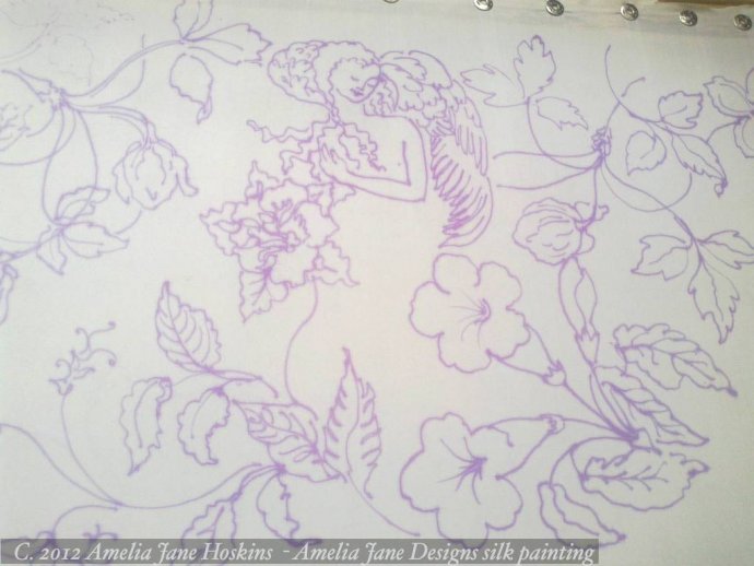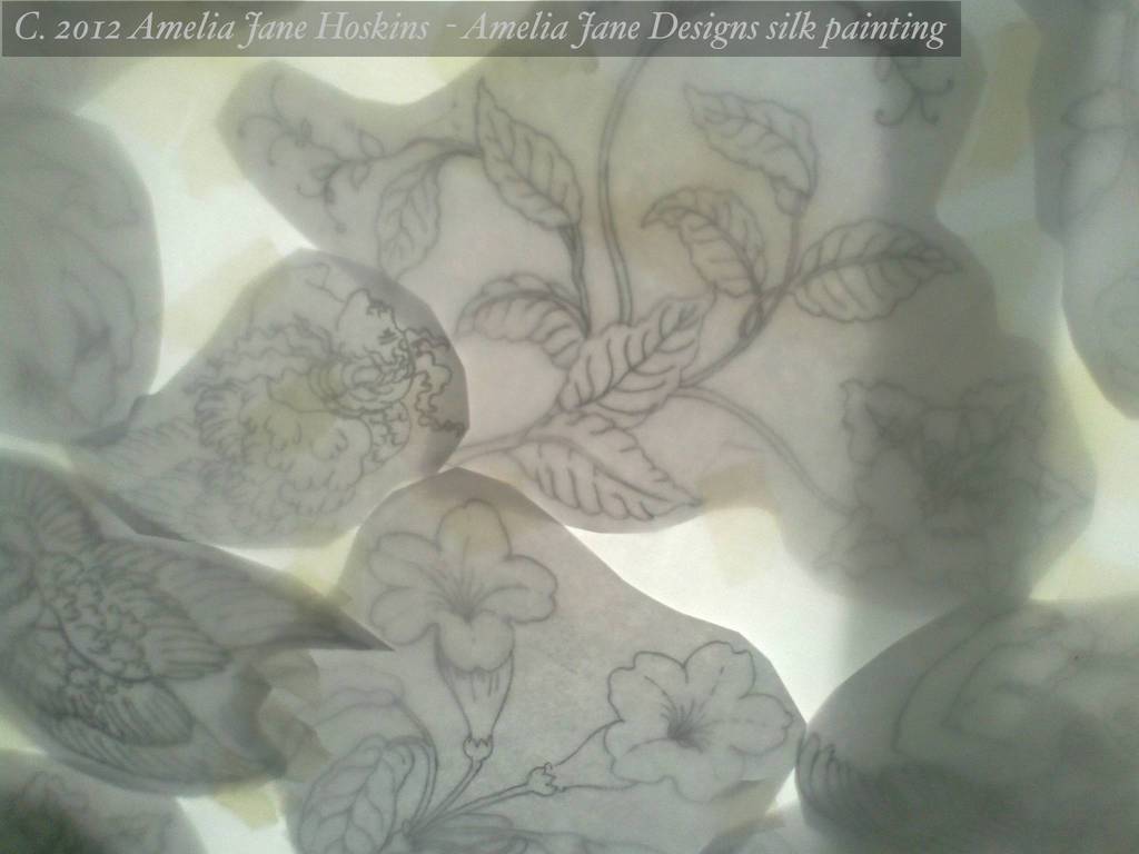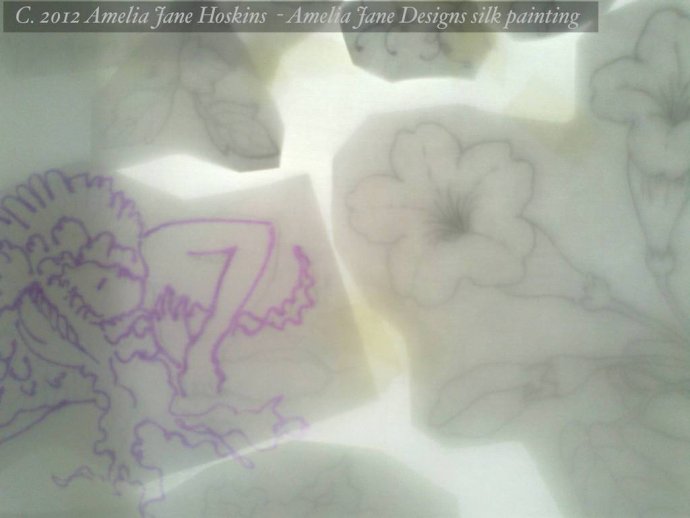 • Drawing out (tracing) designs with water soluble pen. The lines will wash out with steam fixing of silk.