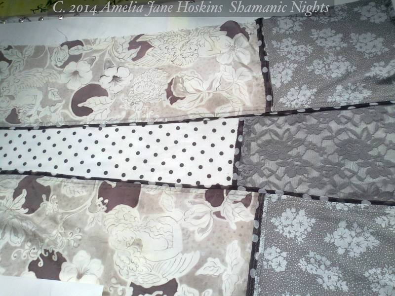 • Cutting motifs from old textile design tracings, then rearranging and taping behind silk frame into a new design. Hold screen up to sunlight or use a light box.  Its possible to work outside without a light box (as done here), propping frame up with sun directly behind, so images are clear.