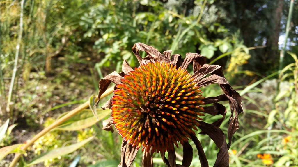 Echinacea in September from Eden Project photo session coordinating with orange. Photos on Resonant-Visions photography site.