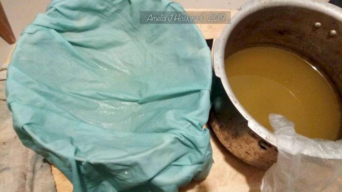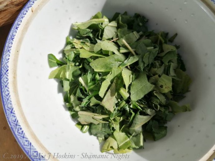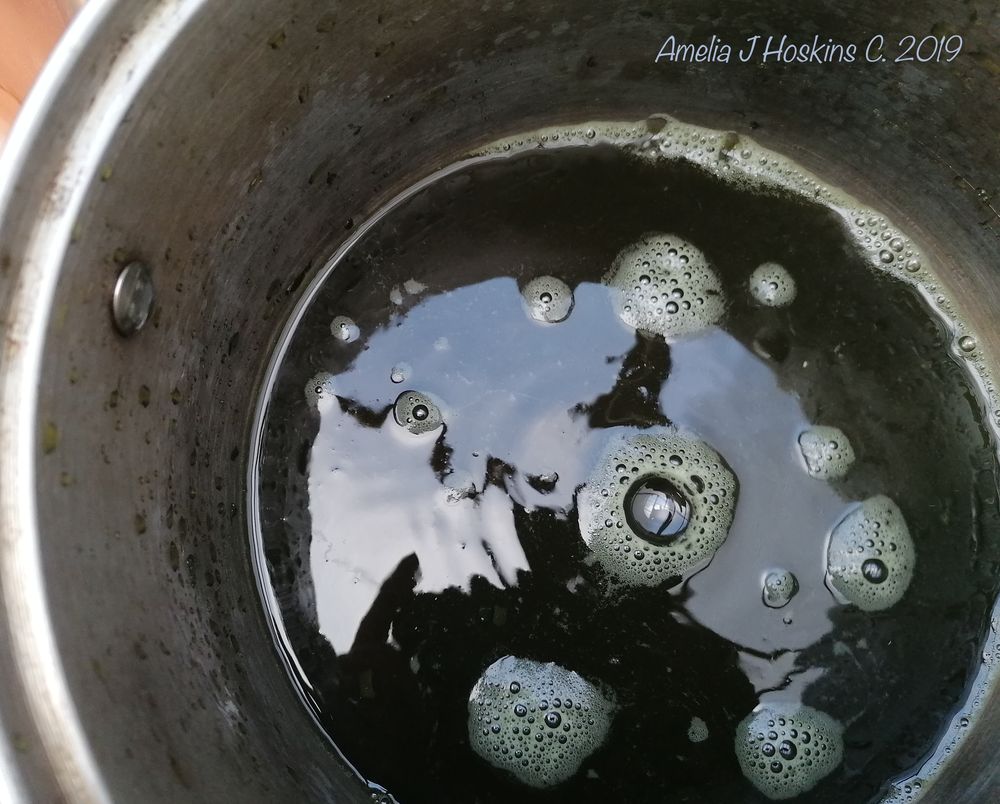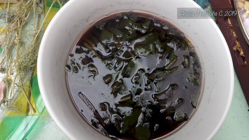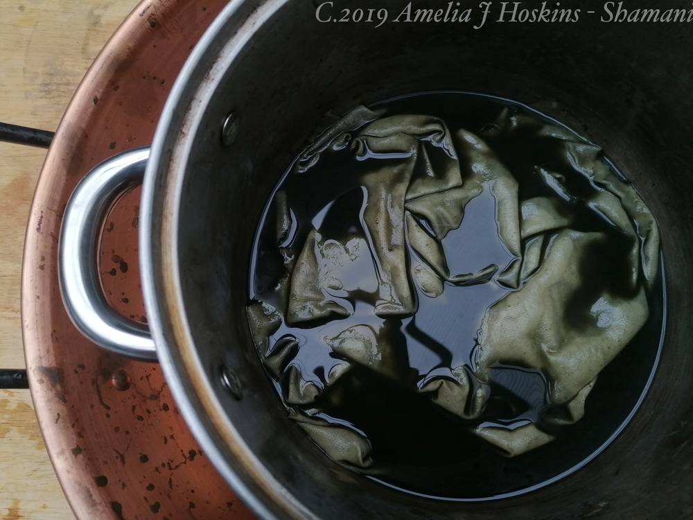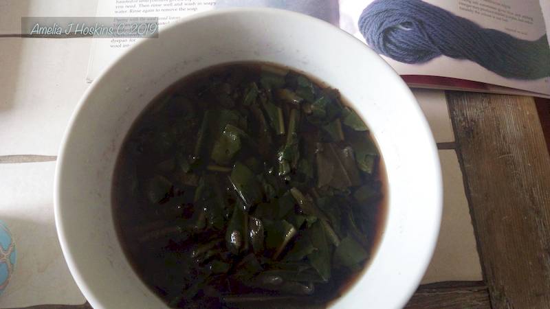 • Boil then simmer woad leaves for an hour – liquid is sherry coloured.