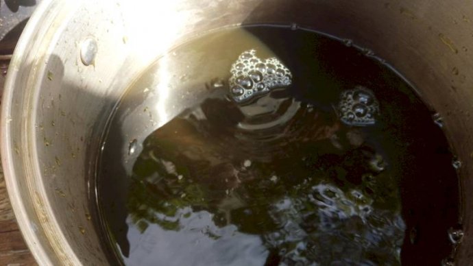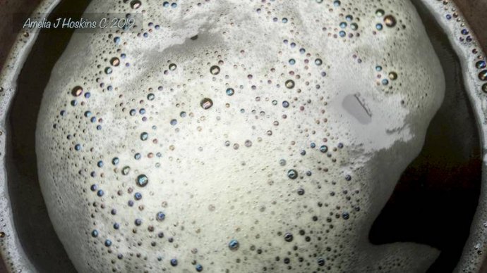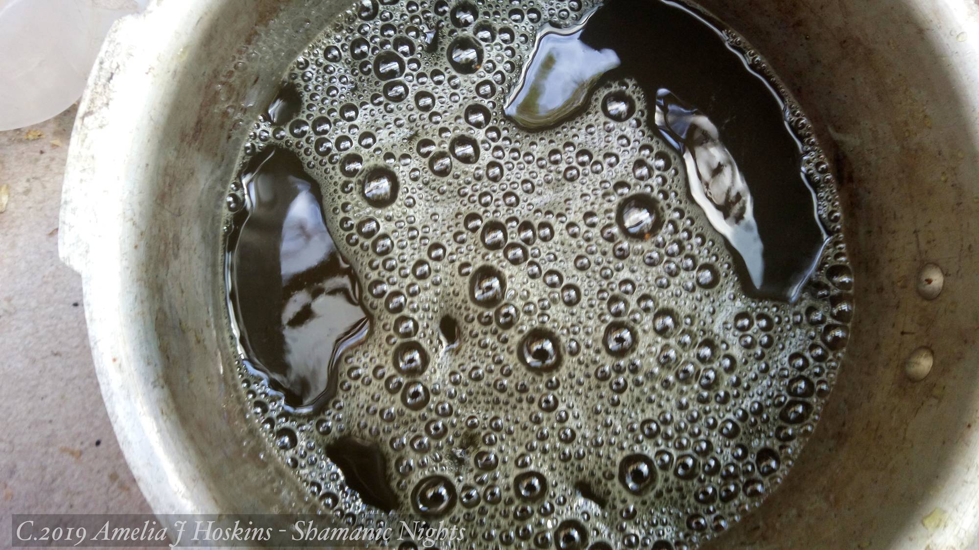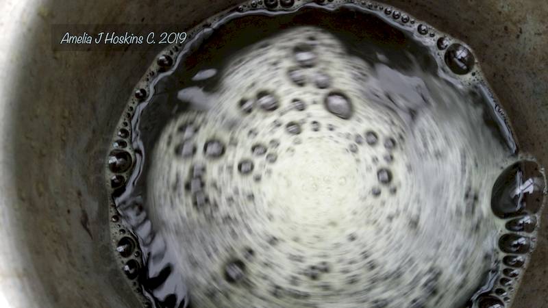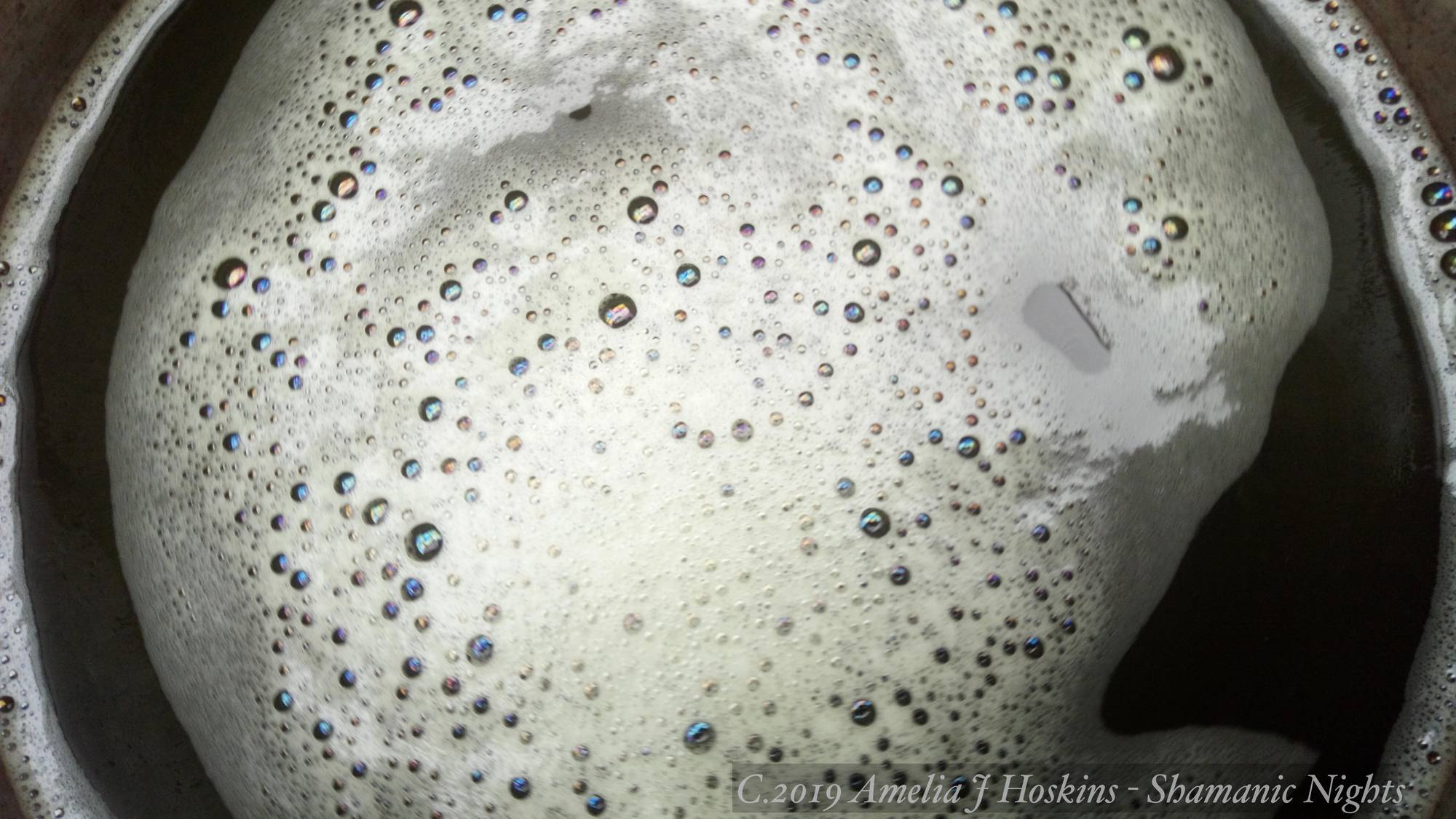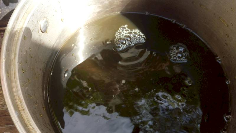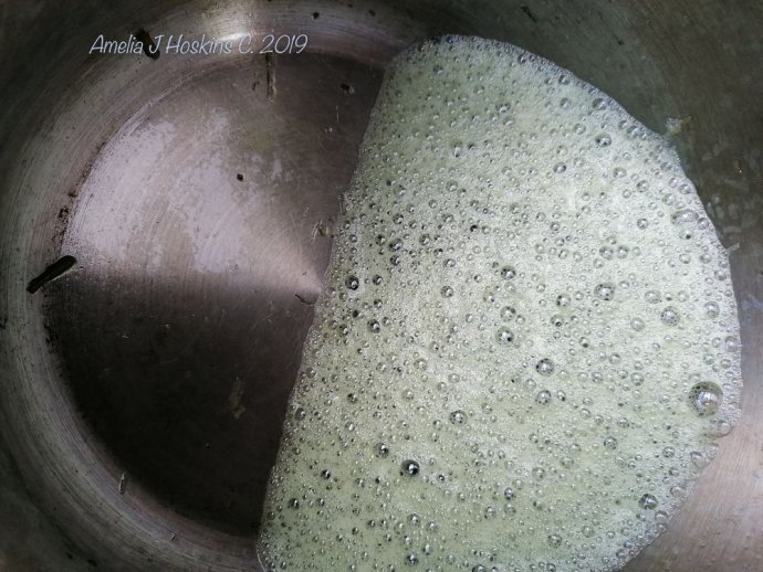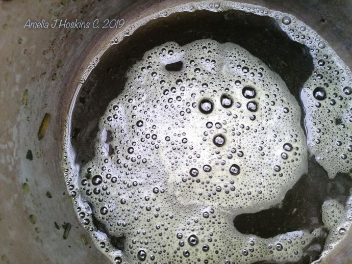 • Whisk liquid until froth forms in about 10-15 mins. Liquid can also be poured from one pan to another to airate, make bubbles.