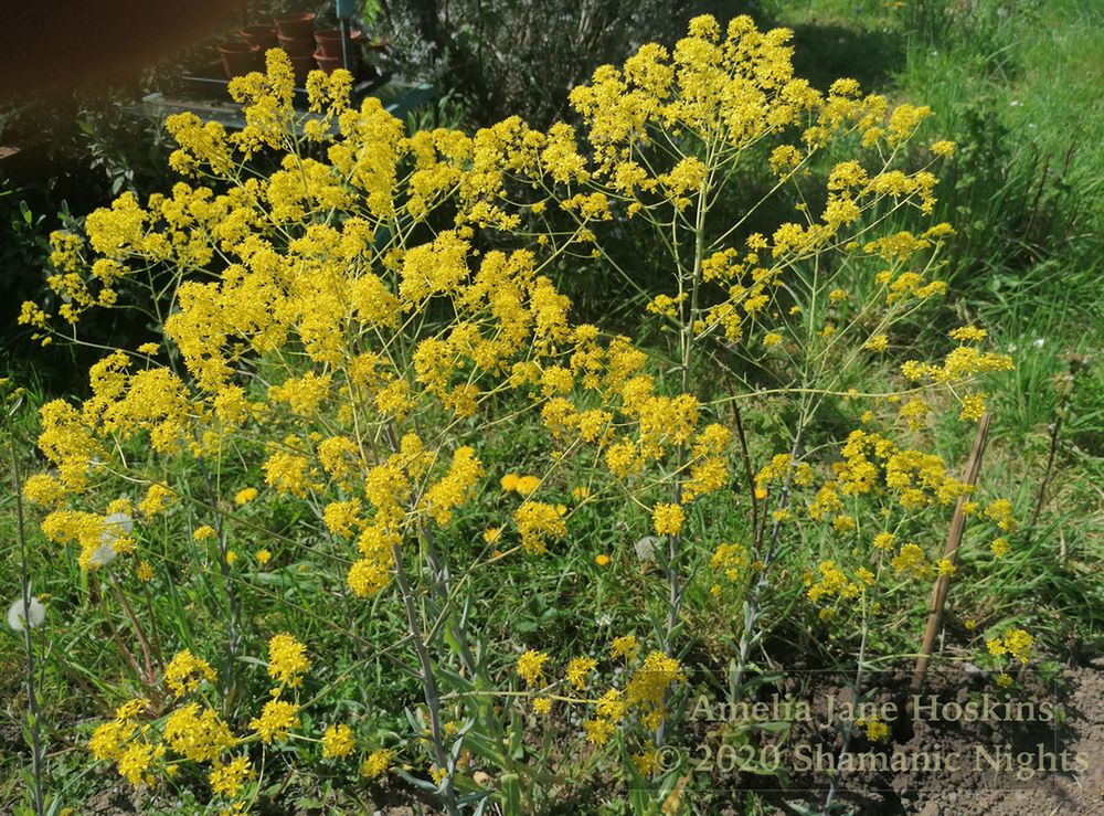 Woad (Isatis Tinctoria) is easy to grow.  Buy some seeds, and watch the plants develop over 2 years.  They flower on 3ft - 4ft  stems in 2nd year (top image) turning to aubergine chandeliers of seeds.  They self seed so long as ground is moist.