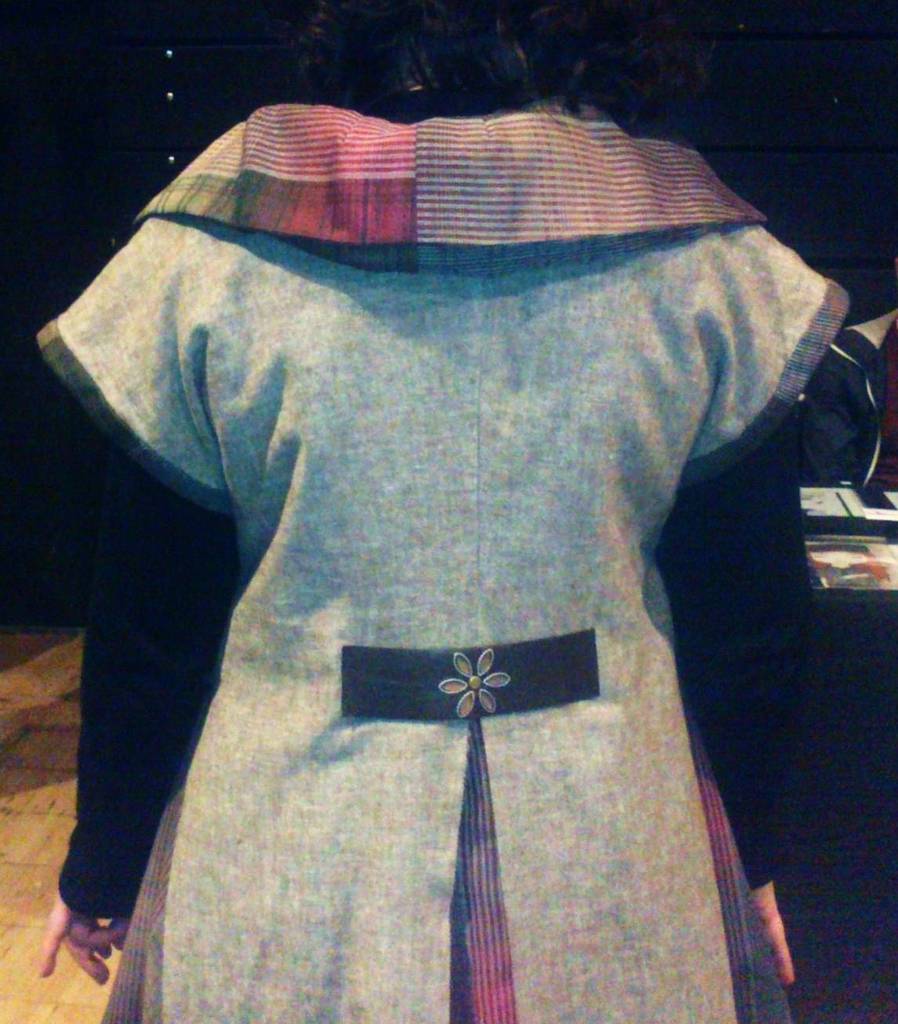 Red check contrast fabric is from a Per Una skirt for side vent flares (seen clearly in this image), collar and pocket. Tabard sleeve edges bound in red check.