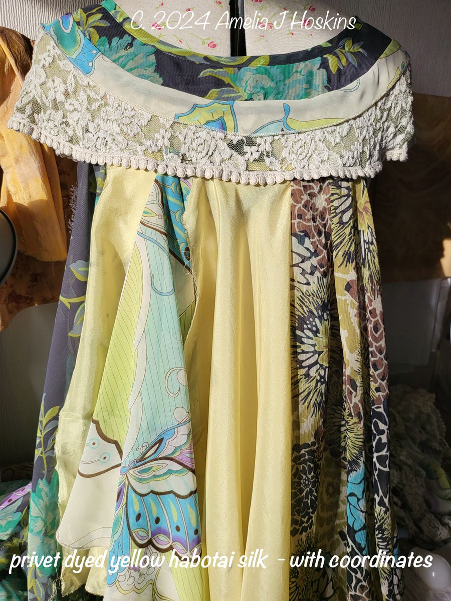 A good dye take up from the Scabious flowers, which had. been positioned over flat silk, similarly as first attempt; and with added sprinkling of individual Scabious tiny petals. These can be used with other steam dyes as a 'spot sprinkling' background with other eco prints.