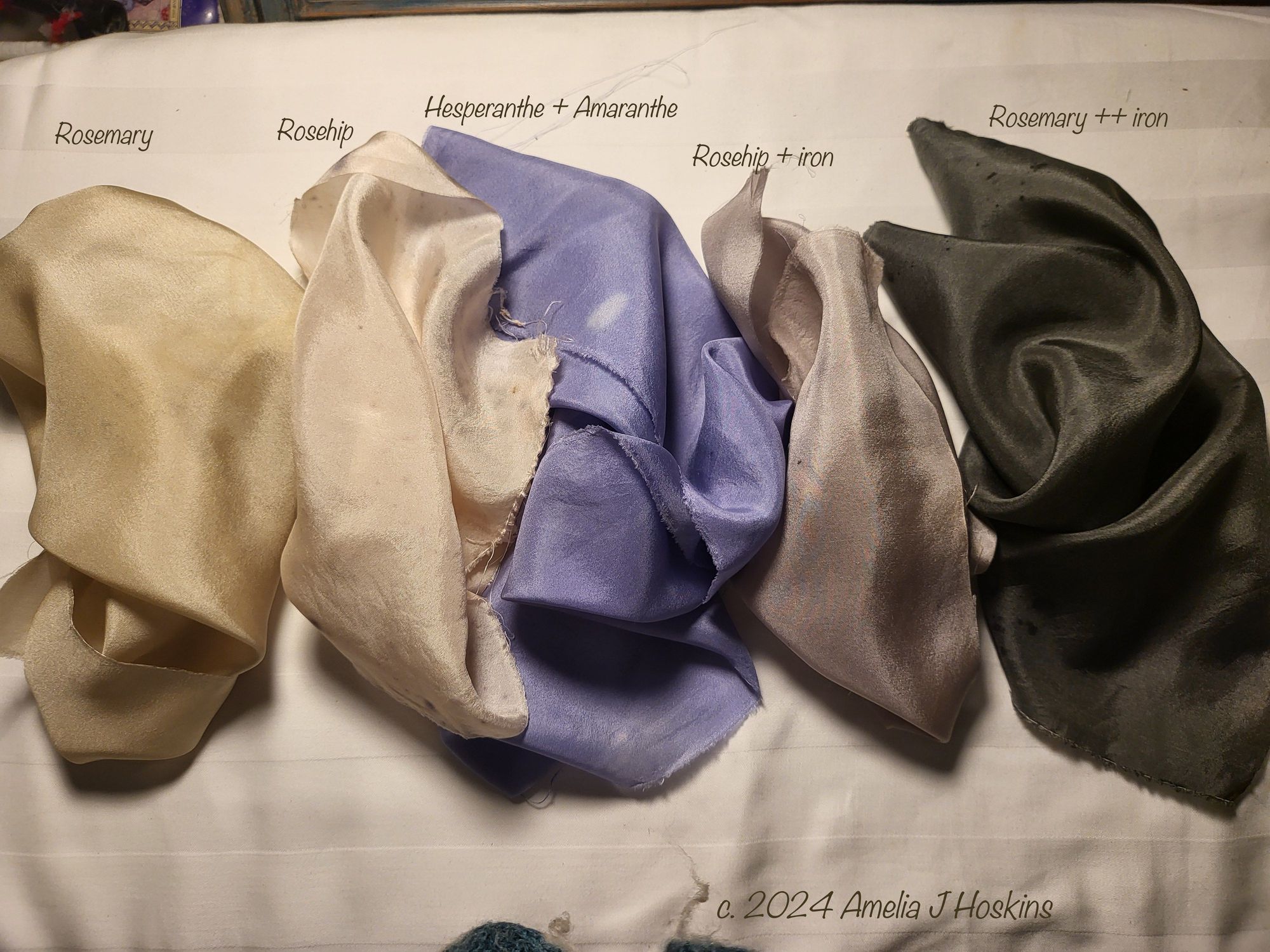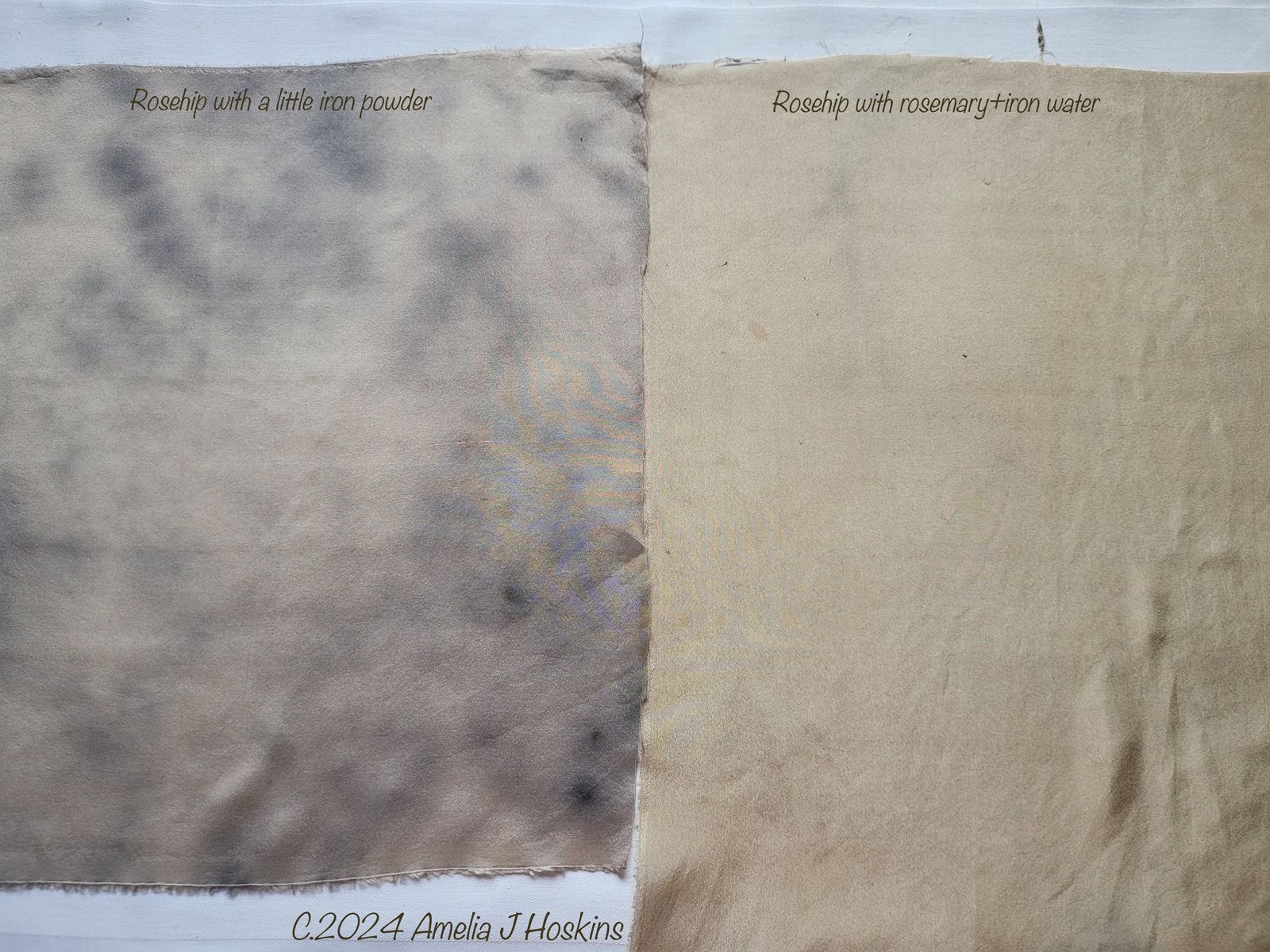 Rosemary simple, Rosemary + iron, (rosemary simple on silk is deeper mustard yellow).