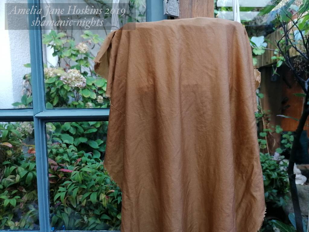 Walnut dyed silk is the darkest obtained so far of the beige and golds range, turning out to be a light coffee brown/bronze colour. It might have gone darker still on Habotai silk. The Ahimsa silk used, is cotton-like in feel, thicker, and although absorbs well, slightly slower.